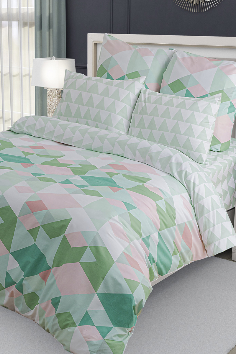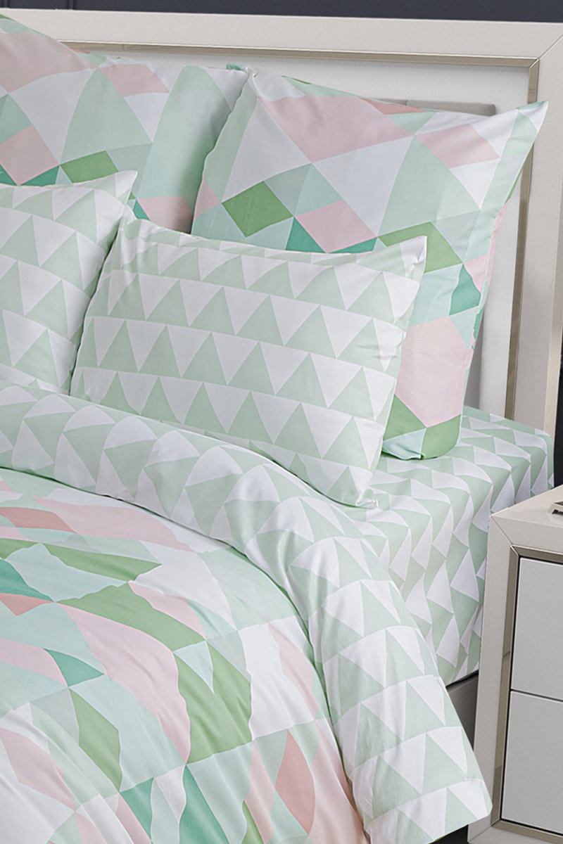 Постельное белье выполнено из сатина высокой плотности (пряжа 40х40) с пигментным окрашиванием. Ткань шелковистая, очень приятная на ощупь. Пододеяльник и наволочки сшиты из основной ткани, простынь и обратная сторона пододеяльника выполнены из ткани-компаньона.