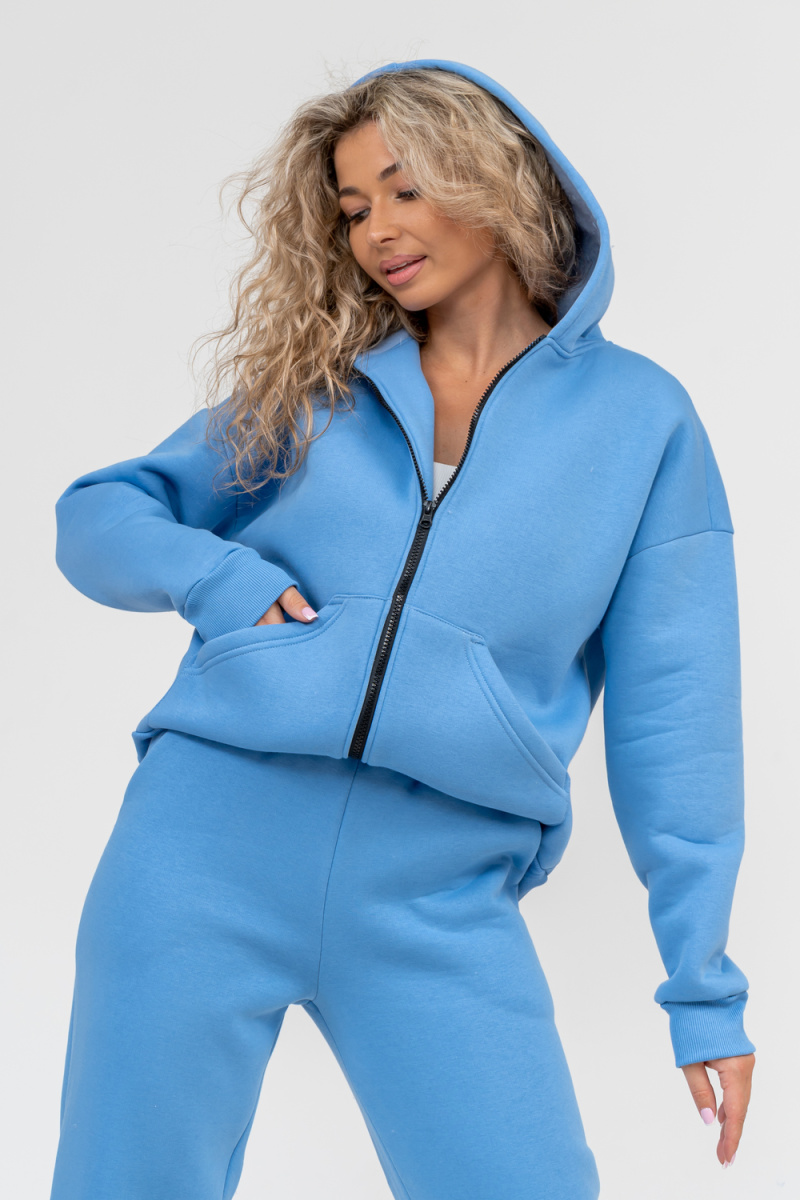 Модный женский костюм выполнен из качественного футера 3-нитки с начёсом, который обладает необыкновенной мягкостью, натуральностью, гипоаллергенностью (не раздражает кожные покровы и не провоцирует аллергическую реакцию), гигроскопичностью (костюм из футера с начесом вбирает и удерживает влагу в волокнах), износостойкостью (полотно отличается повышенной прочностью, устойчиво к повреждениям) и формоустойчивостью (при правильном уходе и стирке 30-40 °С), и обеспечивает максимальное удобство и комфорт при носке. Костюм состоит из современной "zip hoodi" свободного силуэта, которую дополняет: рукав с актуальной сейчас спущенной линией плеча, удобные карманы кенгуру и манжеты. Молния выполнена из качественных пластиковых зубьев закрепленных на прочной тесьме, что обеспечивает плавное скольжение бегунка. А также удобные брюки, которые дополнены вместительными боковыми карманами, поясом выполненным на специализированной поясной машине и манжетами выполненными из качественного кашкорсе. Длина рукава указана от точки
